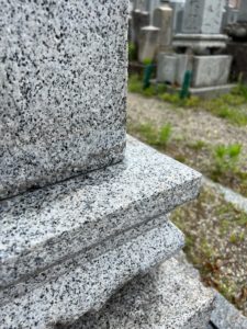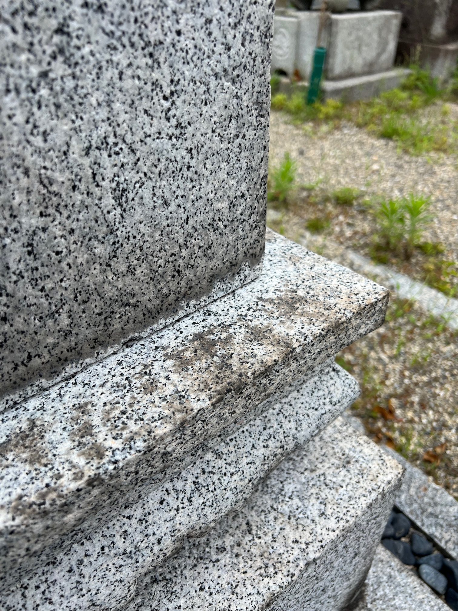 2023年7月31日2023年7月31日 yoshiemon-editor お墓のクリーニング, 事例紹介 お墓のクリーニングを進めると新たな汚れが出現 2023年7月31日 お墓のクリーニングを進めると、どんどん汚れは落ちていくのですが、表面の汚れが取れると、新たな汚れが出現することがあります。 こちらがその例です。 かえって、汚れが目立っているような・・・。クリーニングを担当する私自身も、奥に潜んでいた汚れが気になります。 が、専用の溶剤を塗布して、丁寧に磨いていくと、こんな感じに。 すっきり綺麗になりました。 京都のお墓のクリーニング 善衛門 代表