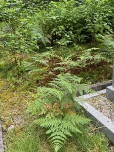 京都市右京区京北の山の麓の墓地なので、前回のお掃除から半年ほどのうちに、草木が青々と茂っていました