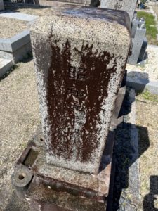 2023年7月13日2023年7月15日 yoshiemon お墓のクリーニング, 事例紹介 90年分のお墓の汚れをオフ 2023年7月15日 Wさんは、墓参りの度にお水をかけたり草引きをしたりしていたそうですが、蓄積された汚れとコケ・藻で、お墓が黒ずんでいました。特に、お墓の建年号と建立者名は、真っ黒で読めませんでした。 善衛門(よしえもん)のスタッフが半日がかりで丁寧に磨いていきますと、「昭和9年」という文字が現れました。 元の石の色味がわかり、90年前にタイムスリップしたようですね。 <クリーニング前> <クリーニング後>